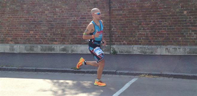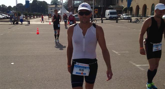 Lars-Erik Gustafsson promenerar några steg i samband med intervjun. Att ge sig på en Ironman efter 10 veckors träning är imponerande, även om han är rutinerad och har genomfört 7 stycken tidigare.