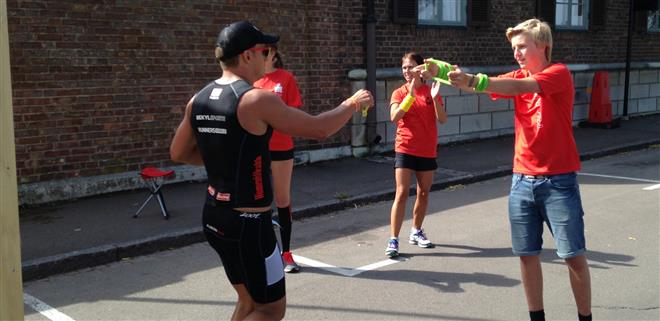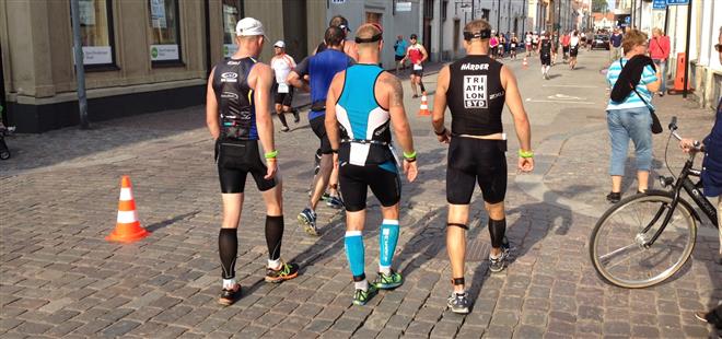 Vid varje varvning erhåller löparna ett färgat band, det är så tävlingen håller reda på triathleterna.