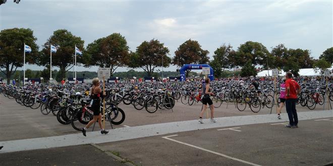 Såhär många cyklar väntade på sina ägare i början av loppet. Nu är det glesare i växlingsområdet.