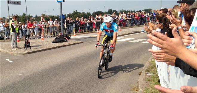 09.17 - KJ Danielsson leder med 150m på cyklingen. Eva Nyström ligger bland de främsta i damtävlingen. Svenskar i topp!