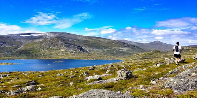 "Jag och en kompis, som tog kortet utan min vetskap, började i Tänndalen och fortsatte på en sommarled upp mot Storvigeln (1561 meter över havet) på den norska sidan. Vi hade lätt packning och sprang upp och ner på en och samma runda. Fjällbäckar, små sjöar och renar gjorde oss sällskap på våran tur och så även solen. På bilden ser man sjön Bolagen, fortfarande på den svenska sidan, och längre fram toppen på Storvigeln som ståtligt blickar ut över Sverige på den norska sidan"
