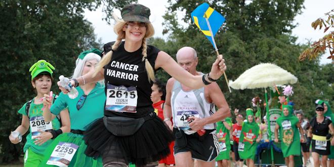 För att maxa loppet skall du vara utklädd. ”All-in” liksom. Piratkostymen jag sprang i förra året och som jag krönte med en stålkorsett fick mycket uppmärksamhet, jag hamnade till och med i tidningen, att jämföra med årets mer budskapsbaserade utstyrsel: en hemmagjord ”cancer-warrior”. Så ett tips: klä ut dig till en känd figur som alla känner till. I år var det smurfarna, Darth Vader och Chewbacca, som drog hem mest applåder. Så desto jobbigare kostym desto mer respekt.