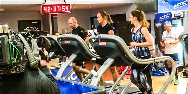 12.00: Kristina Paltén kliver av löpbandet. Hon har sprungit 322,93 km. Nordiska rekordet för män är slaget!