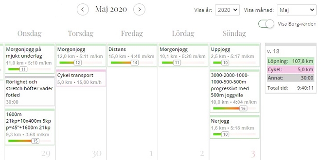 - Möjlighet att visa registrerad ansträngning enligt Borg-skalan i kalendern