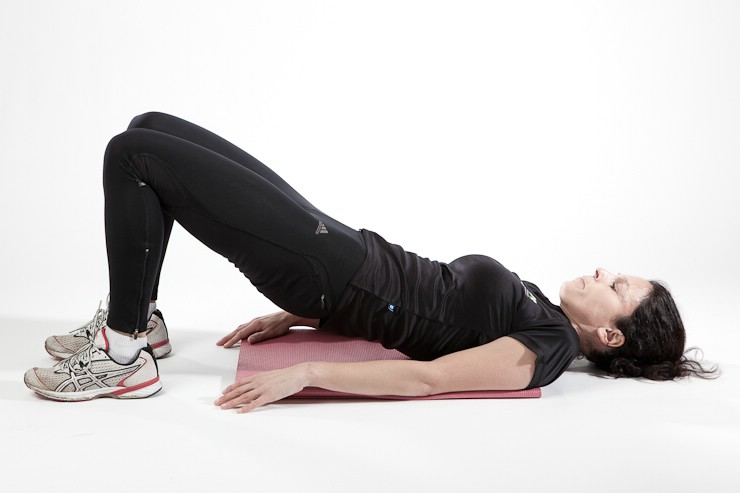 Ryggliggande – sätt fötterna nära rumpan och gör klassiska "rumplyft" där du kniper i skinkorna när du kommer upp.