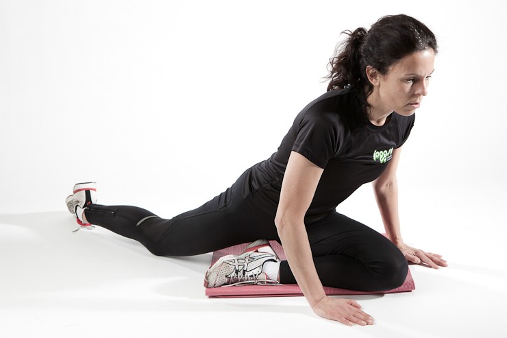 Vid töjning – tänk på att inte svanka för mycket när man pressar fram höften.