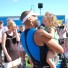 7:30 är det första damerna uppe ur vattnet för varvning. Viktoria Gadd först och Ulrika Eriksson. Karin Edvinsson är tredje dam och efter henne blir det allt trängre i vattnet. Plaskandet från alla armar och ben stiger mäktigt mot oss på stranden.