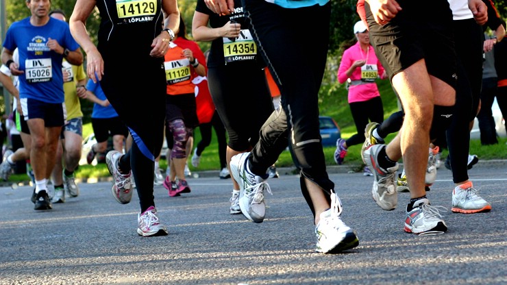 Testa även att lyssna på ditt steg när du springer: Hur låter det? Sträva efter ett mjukare steg som inte låter så mycket. Då använder du kroppen mer för att dämpa och inte landa så hårt. Utvecklar man ett mjukare steg använder man sig mer av sina muskler som stötdämpare. De bromsar in landningen och gör att stöten mot underlaget blir mindre. Ägna en del av ditt vanliga distanspass till att lyssna på steget och under några minuter testa att landa mjukare. Det är inte ovanligt att man efter detta får träningsvärk i vader och lår då man måste jobba mer excentriskt (muskelarbete där muskeln utvecklar kraft under det att den förlängs). Just excentriskt muskelarbete utvecklar mycket kraft men är också det muskelarbete som oftast ger träningsvärk.