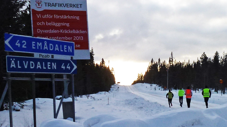 Reportage"Vad jagar ni?" frågar vi ett par Norska jägare ett par mil in i vårt 13 mil långa pass. "Svenskar" svarar en av dem kvickt. De verkar inte tro oss när vi berättar om våra planer. Ser man det utifrån så låter det i och för sig lite konstigt. Fem löpare kommer springandes ett par mil nord-väst om Emådalen i mitten av Orsa Finnmark och säger att de ska springa till Mora, som ligger 10 mil åt andra hållet.