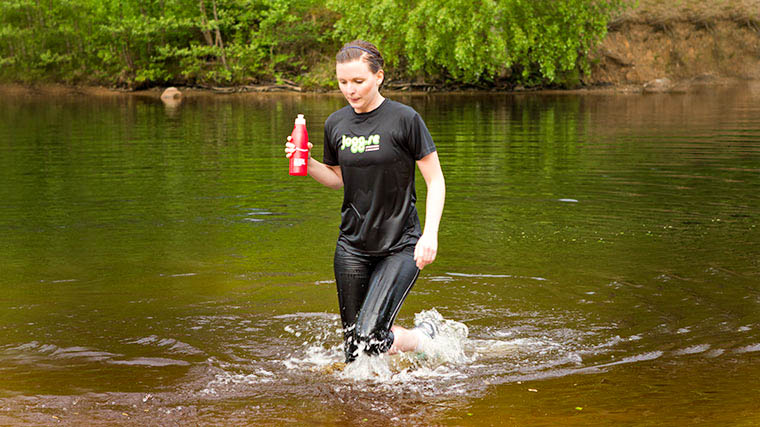 Vissa löpare upplever att de har svårt att dricka under tiden de springer, men det är oftast en fråga om tillvänjning. Vet du med dig att du är känslig är det bra att redan innan det blir varmt ute börja öva dig på att dricka. Ha med dig en liten mängd vätska under dina långpass även under vintern så är magen van när det är dags för löpning i värme. Vatten är mest skonsamt för magen så börja med det. När du känner att du klarar att dricka vatten utan att magen protesterar är det dags att testa sportdryck. För sportdryck är bra att kunna ta till under väldigt varma pass samt under tävling. Förutom att saltet behövs när det är varmt och du svettas extra mycket ger sockret i drycken dig en liten energikick som inte ska underskattas. Även om det är en jämförelsevis liten mängd så kan det göra under för dina trötta ben mot slutet av ett långlopp.