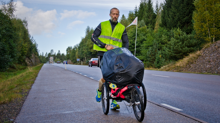 Överlag hittar Fredrik styrkan i de rutiner han byggt upp och tryggheten finns i babyjoggern, tältet och övrig utrusning. De är hans trogna följeslagare som han ogärna släpper. När han inte sover i tält utan fått rum på ett vandrarhem eller hotell blir det problem. "Helt plötsligt så slutar jag ha ordning på packningen, rummet blir en enda röra och dessutom kan jag knappt sova inne".