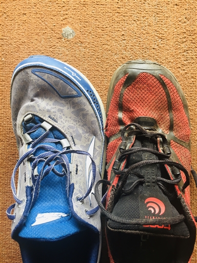 Jag tycker om Altras skor överlag men jag använder dom nästan uteslutande till finare, ganska hårda motionsspår. Dels för att jag inte tycker att foten är fixerad vid svår terräng och dels för att greppet vid våt, svensk stig är bedrövlig, förutom gällande dom skor med vibram-sula.