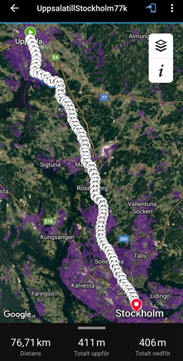 Jag var slut redan i Knivsta pga för högt tempo men gnetade mig hela vägen. Inte jättekul väg, mycket landsväg och nära motorväg.