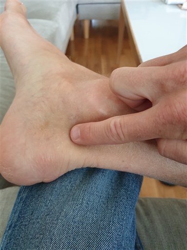 Jag har liknande men sitter dock lite längre ner på insidan av foten.