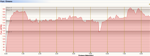 Just skogen tror jag drar upp pulsen. Man tycker det borde dra ner den om det är vacker rogivande natur, men just backar och ojämnt underlag och lite högre stegfrekvens tror jag snabbt drar upp pulsen.