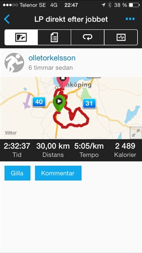 Bättre tempo idag. Fick gräva ordentligt sista 5.