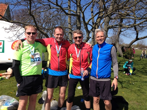 Kraftigt smärtande hälsenor, slog av på takten och fick släppa Anders och Peter efter 5 km, för att få ner smärtan. Gick bra. Men sista 5 km var det extremt jobbigt med hälsenorna igen... Peter ny sprintmästare i LMM, vann före Anders, mig och Mats!