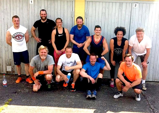 Slägga, traktordäck-pulling, rep, knäböj med säck, KB alt press, rodd i ringar, Slam ball, Wall ball, KB 8:an...