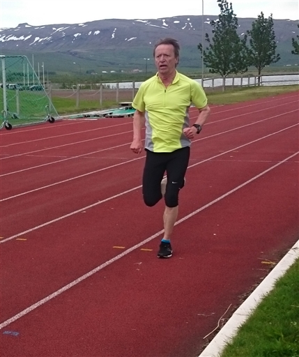 3*3*300m på IP i Laugarvatn. Vissa varv fick jag gå ut på tredje banan för han höll på att rengöra tartanbanan med någon form av högtryckstvätt och i början av andra rakan hade han bilen med aggregaten på. Blev ca 300m per sträcka och på ca 60s. Å andra sidan var vinden väldigt stark och jag sprang mest i medvind.