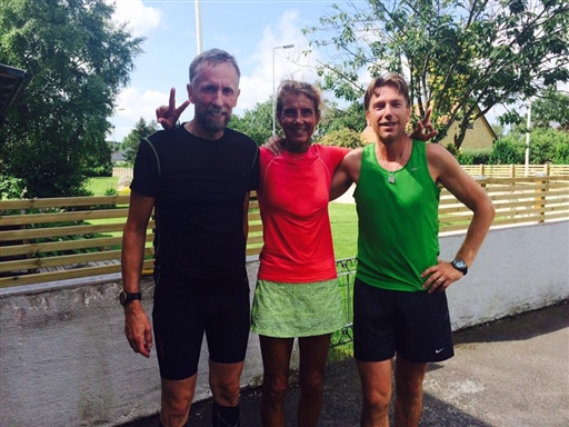 Med Ing-marie, Håkan och Isak. Joggade bort till Kenyan-backen, 6 st stegringlopp sedan backintervallerna 10x1 min med jogg tillbaka på dubbla tiden, sedan 6 min jogg, sedan löpstyrka i backe: 40 utfallsteg, 6 squatjumps, 15 enbenshopp höger ben, 15 enbenshopp vänster ben x 3 serier. Löpningen känns riktigt bra nu, kan löpa med ett bra steg och med bra driv, längesen det kändes såhär bra. Ing-marie var en inspirerande lekledare idag!!