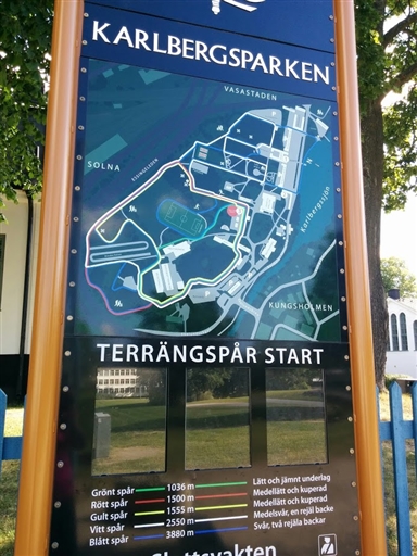 Idag varvade jag försiktig jogg med gång för att inte få ont i knäna. Sprang verkligen inte mycket, men det kändes bra att jag inte fick särskilt ont och att jag lyckades ta reda på hur löparspåren i Karlberg funkar. De var över förväntan, dessutom, känns jättekul! Trodde inte att jag hade så bra löparspår så nära.