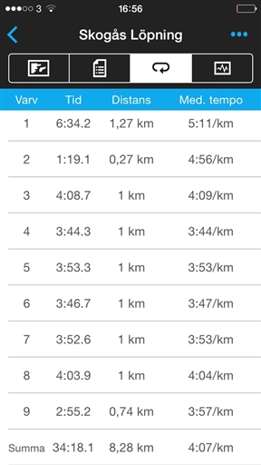 typ, distans, tid och snittfart. Stjärnmedlemmar kan kopiera samtliga fält och diagram.