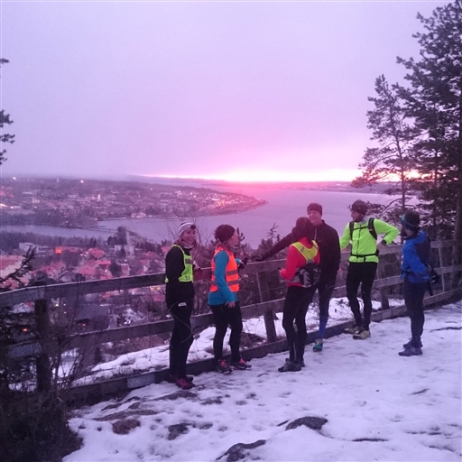Med Maria, Mari, Christina, Henrik, Sverker, Joel och Peter. Start i Badhusparken, till Frösöberget, runt på reflexbanan, tillbaka till Badhusparken. Isiga spår.