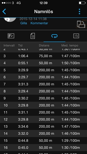 typ, distans, tid och snittfart. Stjärnmedlemmar kan kopiera samtliga fält och diagram.