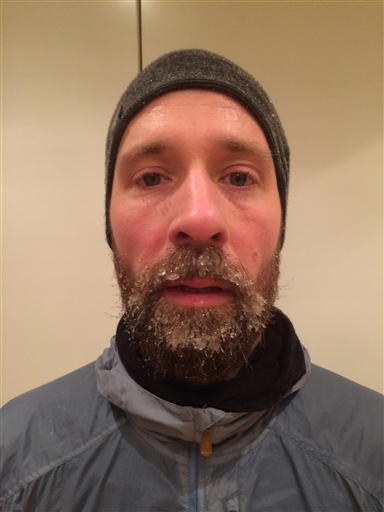 Väldigt kallt men frös egentligen bara i kalsongområdet. Dax att skaffa något praktiskt plagg kanske. Tog rekord i mängd fruset vatten i skägg.