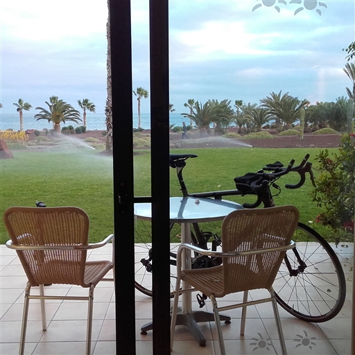 Så härligt att få springa i korta tights och t-shirt. Det är fjärde gången vi är här. När vi kom idag så fick vi en glad överraskning då vi blev uppgraderade till lägenhetshotellet och där vi blev tilldelade en liten lägenhet med uteplats och havsutsikt. Skönt med en jogg efter flygresan även om både Jerry och jag kände oss lite trötta i benen. Många höjdmeter plockade vi också.