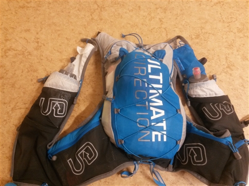 Testsprang med nya UD-västen komplett med Hill-Kit för en bergsmara. Kändes riktigt bra. Stavfästet på sidan funkade tyvärr inte alls i praktiken. Stavarna var ivägen för armarna.