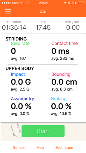 Sista längre distansen inför Stockholm Maraton, samt även första rundan med Zoi. Slutsatsen från rundan är nog att jag har nog en del teknik träning framöver. Några kommentarer på min teknik?