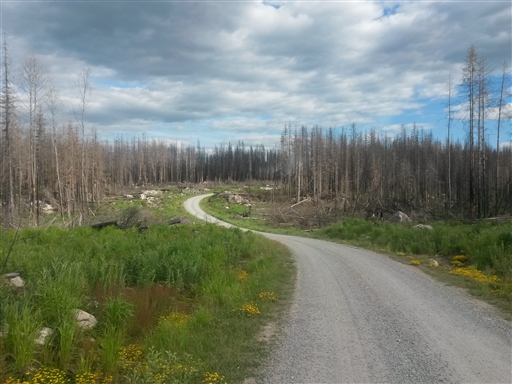 Sprang skogsbilvägen från Skräddartorpet i Virsbo till Västerfärnebo genom skogsbrandsområdet.