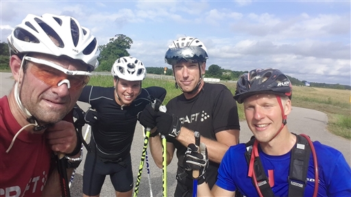 Rullade ner till Golfarenan och mötte upp Lasse, Viktor och Rickard, vi rullade sedan tillbaka till G-torp mot Harplinge där vi körde två slingor och avslutade via Särdal Haverdal. Lugn fart, kändes bra. Avslutade med 20 min i styrka i utegymmet.
