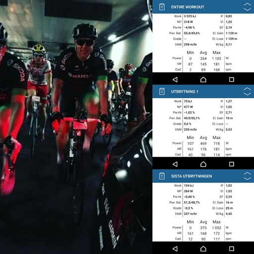 Gjorde ett par tidiga försök att gå loss men dömt att misslyckas med 2000 startande, så blev en kort stund i rampljuset. Utöver "peak 12min" som bjöd på 413W NP blev det en handfull försök till utbrytningar, men var rätt mör i benen på slutet och när det blev klungkrasch framför mig med 25 kvar gick tåget för jagade som ett svin för att komma ikapp klungan efter detta :(
