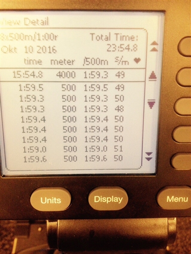 Skiergintervaller: 8x500 mtr vila: 60 sek
