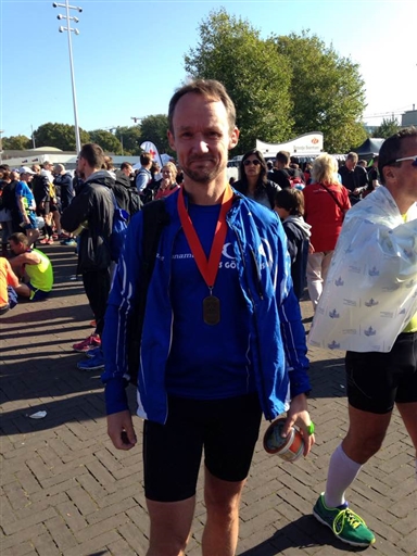 Årets andra fullföljda maraton, sex veckor efter Helsingborg Marathon. Förutsättningarna var mycket bra. Hade fått till några fina nyckelpass och en bra formtoppning den sista veckan. Skade- och sjukdomsfri. Perfekt löparväder (8-15 grader, stilla och sol) och en flack fin bana. Startade i en grupp för löpare med måltid 3:00-3:30, men det verkade som om de flesta låg i undre delen av det spannet eller under, så det blev mycket kryssande för att komma framåt de första 13 km. Lite irriterande och gjorde att min snitt-tid låg på 4:26 under lång tid. Efter 20 km hade trängseln försvunnit och jag kände mig oförskämt fräsch och trygg med att slå pb. Jag trodde till och med att jag hade chans på 3:10. Givetvis började det gå tyngre vid 25, men ändå fullt kontrollerat. Någonstans strax efter 30 kom jag ifatt Fredrik Aplander som startat i en startgrupp före mig och vid 35 såg jag Micke Engkvist framför mig. Jag sprang ifatt honom på allt tyngre ben. Han sa att han var på väg att tappa tempo rejält, så jag fortsatte förbi honom. Någonstans strax därefter kom min vägg när det blev riktigt jävla tungt. De sista kilometrarna blev en mental kamp när jag utnyttjade varje drickastopp för att få gå några steg. Annika och barnen hejade på mig vid 38 och Pernilla vid 40. Tror inte jag var en vacker syn då. Kilometertiderna droppade, men inte så dramatiskt som det kändes. Bet ihop och krigade mig i mål utan några marginaler av energi. Det blev inga 3:10, men pb slogs med över 4 minuter, så jag är jättenöjd!