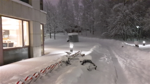 Cykeln var mest ivägen och jobbig att släpa på på vägen till jobbet. När det dessutom under dagen föll ytterligare 30-40 cm snö så skulle det inte bli direkt enklare att cykla. Så jag övergav "skeppet" (lämnade cykeln på jobbet) och tog en löptur hem. Inga bussar gick i Stockholm så kollektivt var inget alternativ.