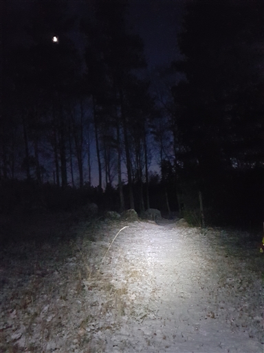 Lugn och fin runda, delvis på en nyfunnen stig! Alltid trevligt med löpning i pannlampans sken...