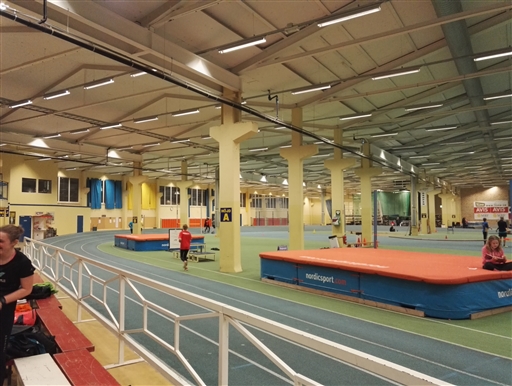 Inomhus på bana. Cykeltid för intervall+vila 3:30.