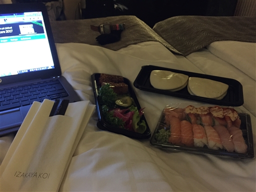 Nu ska jag onsdagslyxa lite med Sushi och dumplings på rummet! Kanske kan bli kaffe och kaka också!