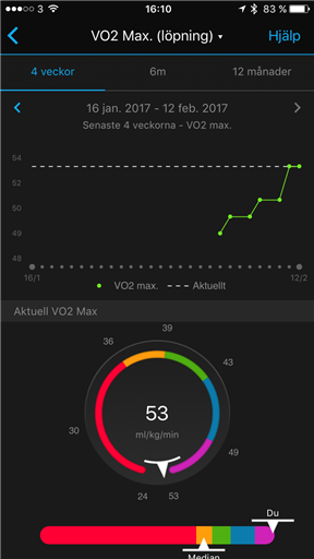 Ingen ökning av VO2-max idag, men det har ju varit en stabil ökning ändå sen omstarten förra helgen.