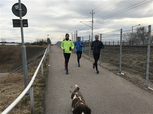 Härlig runda med polarna Fredrik, Peter O och Per E. Ronja var också med, men sprang lite osynkat. Fungerade som yoga-matta åt Fredrik på övningarna utanför biblan efteråt!