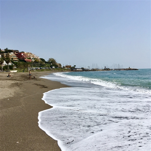 Köpte på mig en stor flaska vatten i ett glasstånd efter typ 7 och försökte hetsa fram en bättre vätskebalans. Fortsatte ett par, tre kilometer till tills klockan visade drygt 10 då jag satte mig på en stenstrand och filosoferade en stund innan jag vände tillbaka. Den något knapphändiga frukosten var nu slut för länge sedan och hungern började bli väldigt påtaglig. Sprang förbi många (och jag menar *många*) restauranger på min väg tillbaka och jag ljuger inte om jag säger att varenda en av dem var synnerligen välbesökt av väderglada, uppklädda, konstant pladdrande och skrattande helg-firande spanjorer - en ren fröjd för mina nu trötta och hungriga ögon.