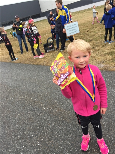 Sprang Knattestarten med Julian som sprang jämnt och fint. Nöjd över sin godispåse i mål!
