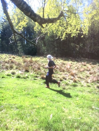 Löpning och mycket gång med A i sommarvärme. Små Adam och Eva och en uppskrämd räv.