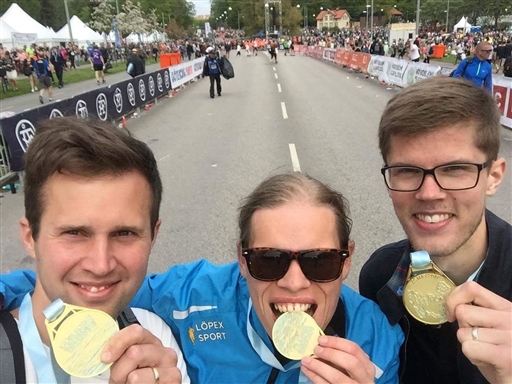 Efter anmärkningsvärt dålig uppladdning med 2,5 veckors vila pga förkylning och dessförinnan nyligen en vad-skada är jag väldigt nöjd med den här tiden. Hade nya sulor för att motverka supinationen och jag fick inga känningar alls i benen =succé så långt. Däremot stora blåsor under båda fötterna.
