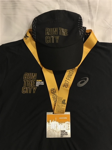 Ute från hotellet redan 04:25 med sikte på att kanske hinna med en tidigare båt, de skulle gå var 20:e minut. Promenaden till till färjeläget skulle ta drygt en kvart men med lite bonusjoggning var det inga problem att hinna med. Överfarten tog mindre än en kvart så det var fortfarande mörkt på startområdet och inte mycket att göra, bara att sitta ner och vänta. Med 20 minuter kvar till start tog jag av överdragskläderna och lämnade in min kasse för transport till målet. In i startfållan, strax framför farthållaren för 3:30. Planen för dagen var att försöka gå ut rätt lugnt, runt 4:45-tempo, för att få en hyfsat behaglig resa. Inte jättemånga startande, max ett par tusen (Edit: 1840 anmälda varav 1565 gick i mål. Hur många av de 275 övriga som var DNS respektive DNF framgår inte). Trodde det skulle vara lite fler eftersom det är Nya Zeelands största maraton och det bor 1,5 miljoner bara i Auckland. Speakern pratade om 14 000 anmälda, men det måste ha varit totalt för alla sträckor – det springs även halvmara, 12 km och 5 km.