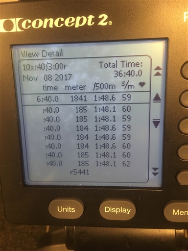 Skierg intervaller: 10x40 sek vila: 3 min lugnt