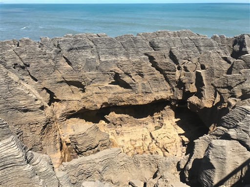 Dagen ägnades mest åt bussresa, men det var mer som en riktigt lång sightseeingtur. Fint väder för det mesta och en chaufför som berättade om det vi såg längs vägen på ett personligt sätt. Några stopp blev det förstås på vägen, en av pauserna var vid Pancake Rocks med häftiga klippor med tunna lager av kalksten.